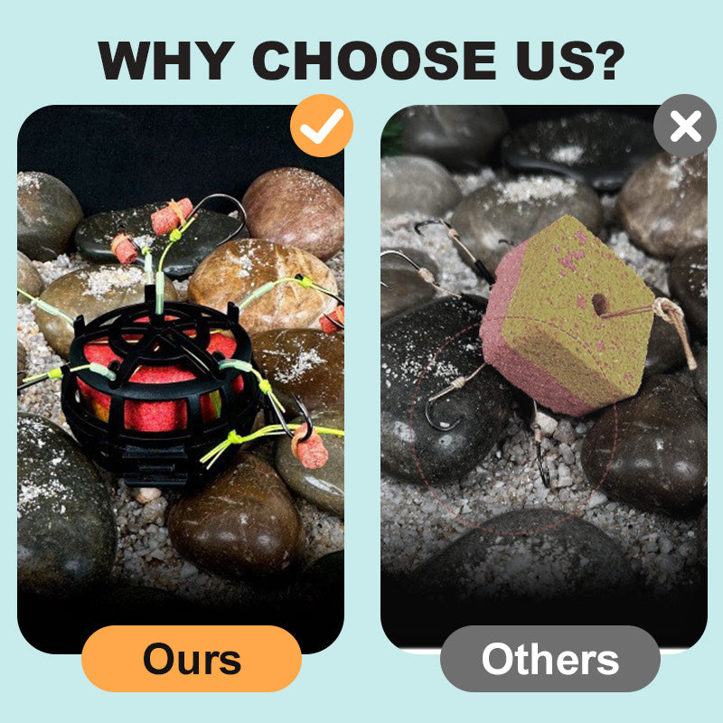 ALLES-IN-ÉÉN LOKVOER SYSTEEM – Combineert 6 scherpe haken met een ruime voerkorf om vissen sneller aan te trekken. Vul met blokjes, pellets of poedervormig lokvoer – verspreidt onweerstaanbare geursporen die het eetgedrag van vissen stimuleren.
