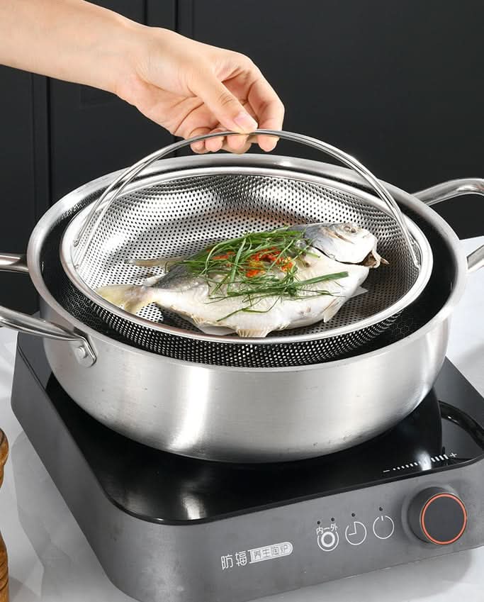 【Dik materiaal, fijne filtergaten】Gelijkmatig verdeeld, geschikte grootte, geen lekkage van voedsel en kan een snel kookeffect bereiken