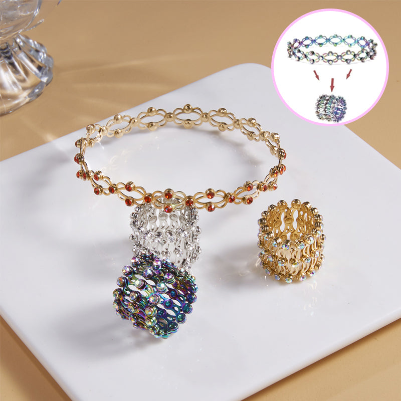 MÅNGSIDIG DESIGN - Det vikbara, infällbara ringarmbandet erbjuder oöverträffad mångsidighet med sin innovativa design. Den förvandlas sömlöst från en snygg ring till ett elegant armband och passar enkelt till alla tillfällen. Oavsett om du deltar i ett formellt evenemang eller njuter av en avslappnad utflykt, är denna accessoar utformad för att komplettera din ensemble med sin anpassningsbara funktionalitet.