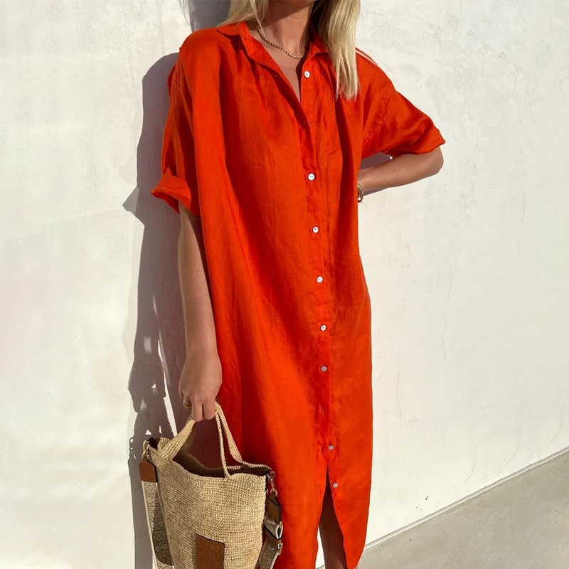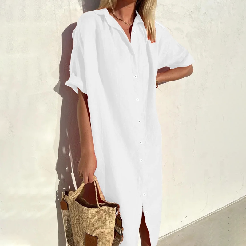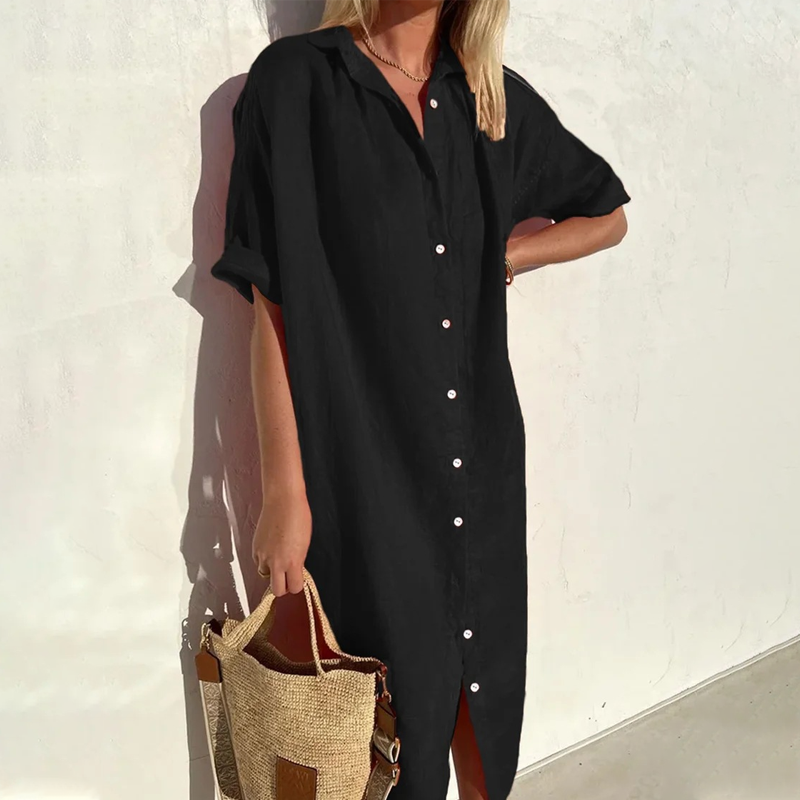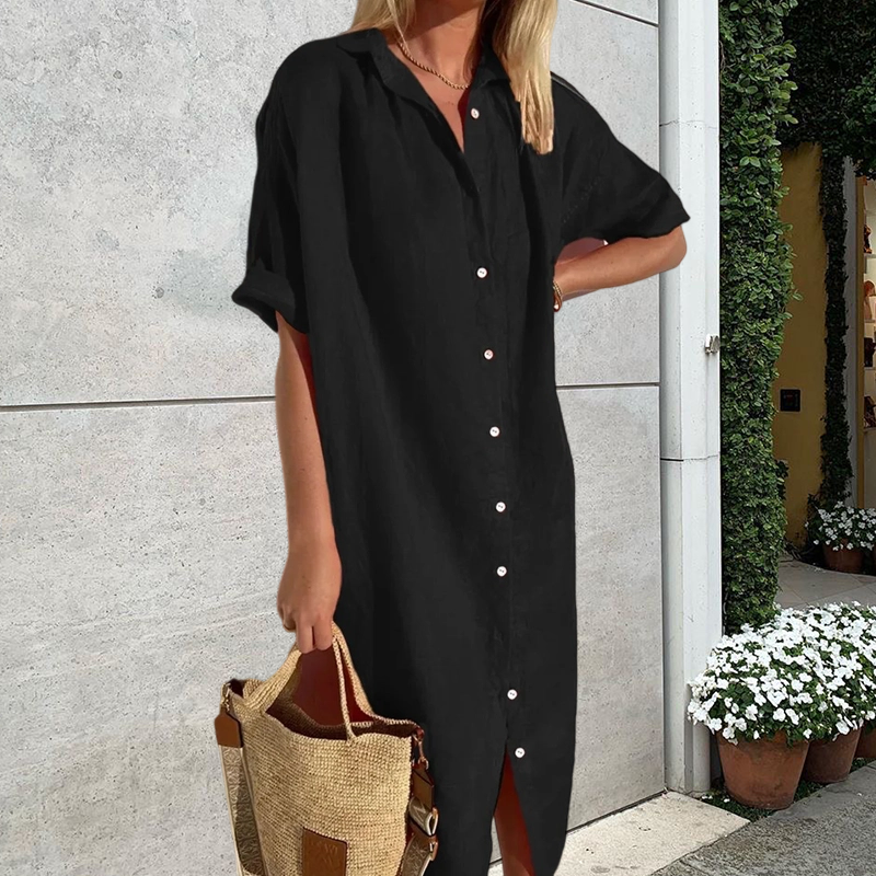 Verpakking bevat: 1× maxi-jurk met knoopsluiting en omgeslagen kraag