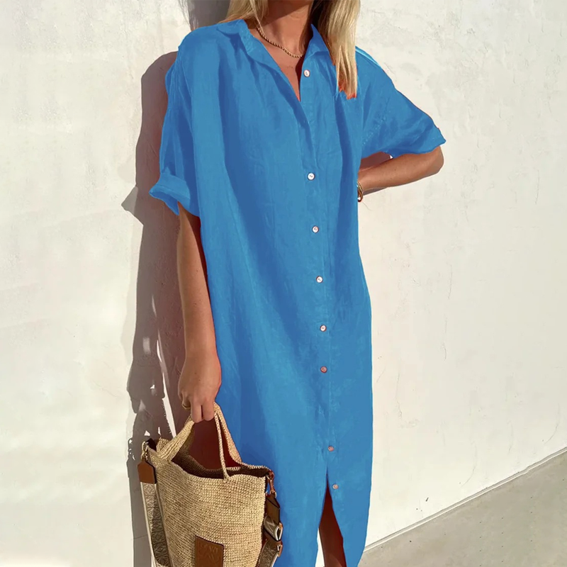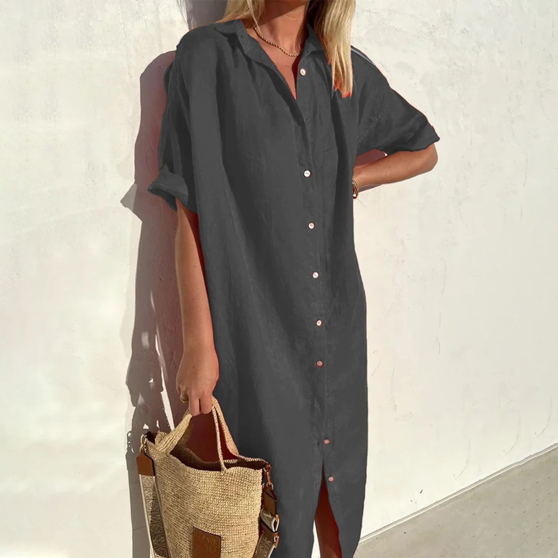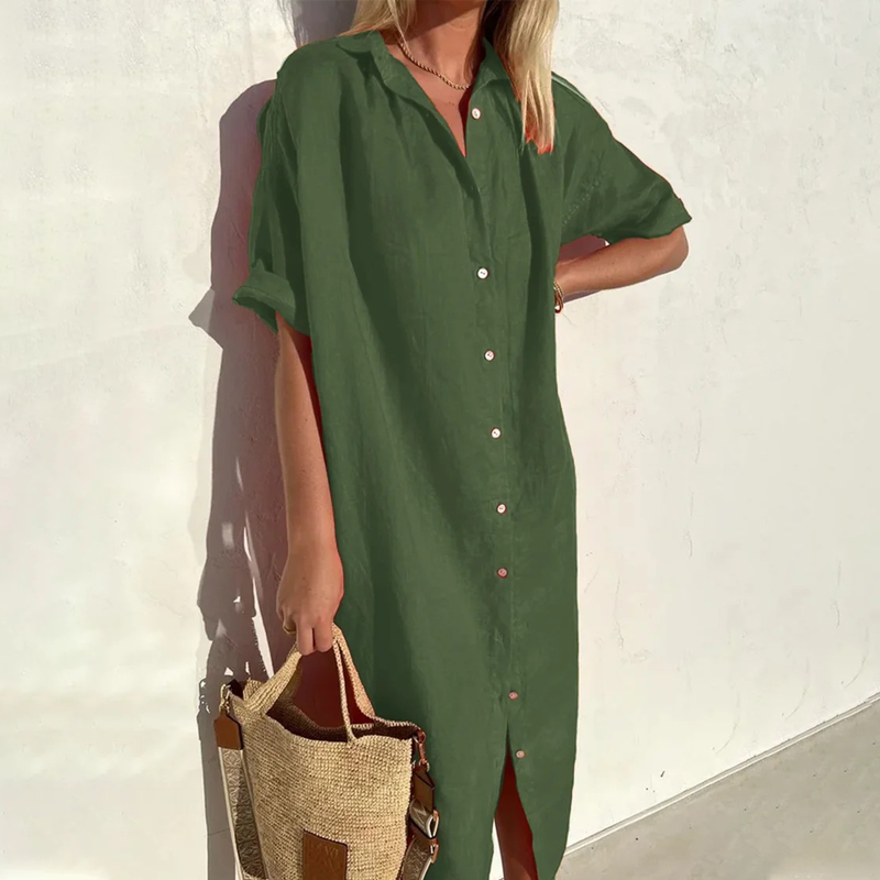Maxi-jurk met knoopsluiting en omgeslagen kraag