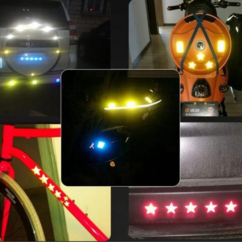MAXIMALE ZICHTBAARHEID IN HET DONKER – Verander uw auto in een opvallend lichtpuntje na zonsondergang! Deze reflecterende sterstickers lichten fel op in koplampen en verhogen uw zichtbaarheid tijdens nachtelijke ritten of bij pech langs de weg. Veiligheid en stijl gaan hand in hand – of u nu op de snelweg rijdt, een landweggetje volgt of parkeert in een donkere garage.