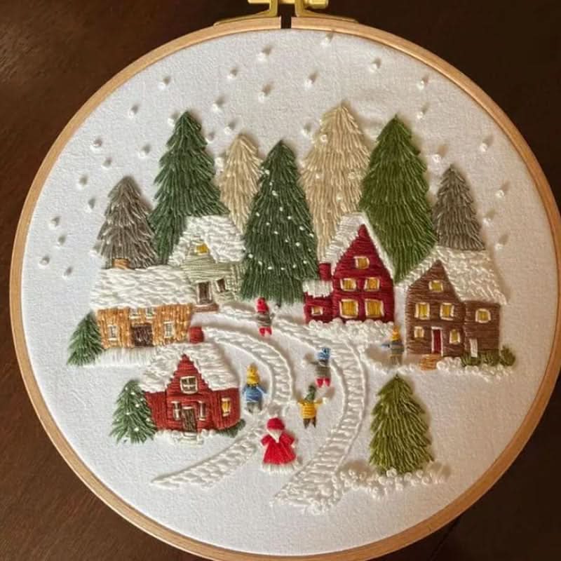 KERSTBORDUURKIT - Blijf aanwezig tijdens Kerstmis met deze Winter Snowy Village Borduurset, perfect voor een gezellige naai-avond en ideaal voor degenen die winterlandschappen waarderen.