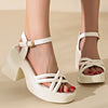 Verpakking bevat: 1 paar * Dames Sandalen met Open Teen en Hoge Blokhak