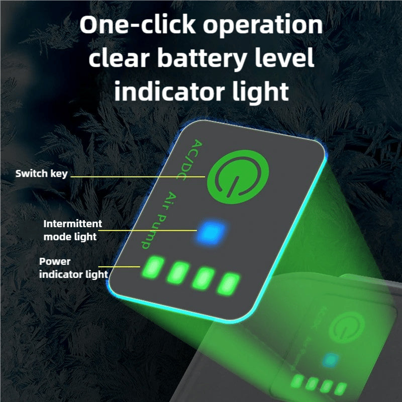 ONTWERP MET HANGENDE GESP - Dankzij de handige ophangbeugel kun je de luchtpomp eenvoudig aan het aquarium, je broekzak of een andere plek hangen – flexibel en praktisch in gebruik.