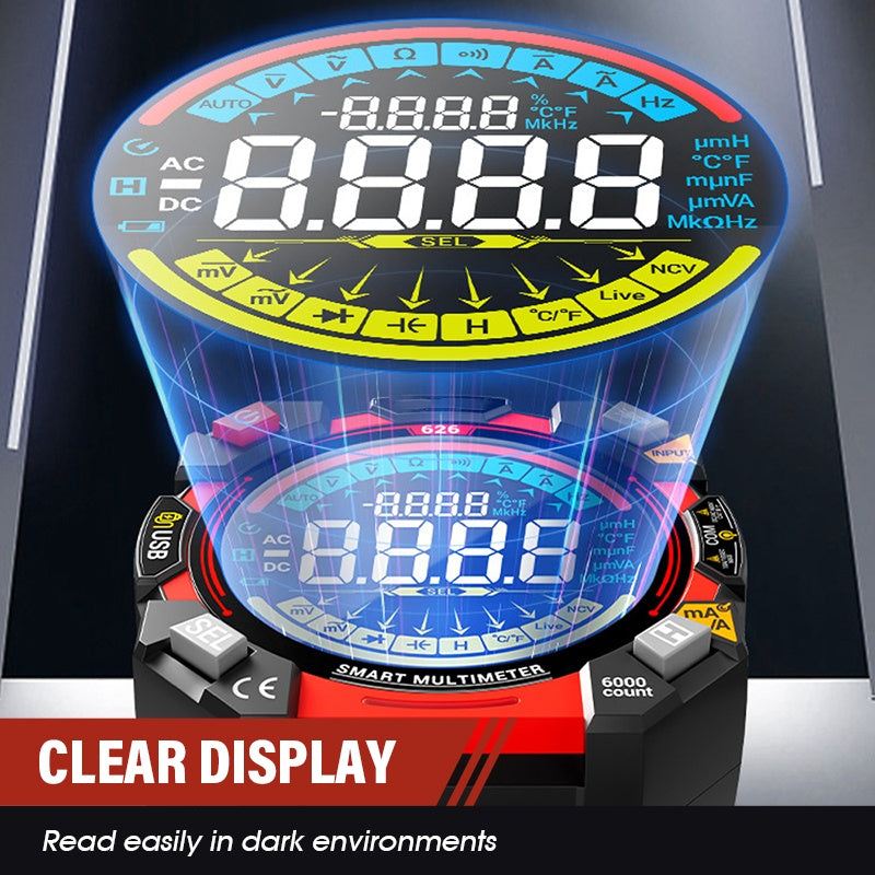 HOOGNIVEAU PRECISIEMETING: Biedt 6000 tellingen voor nauwkeurige meting van DC/AC-spanning, stroom, weerstand, capaciteit, frequentie, diode, continuïteit, temperatuur en NCV-detectie voor veelzijdige elektrische testbehoeften.