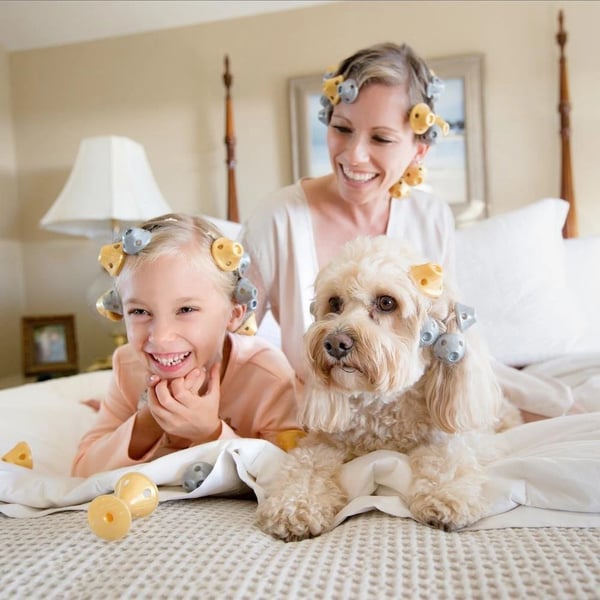 Krulspelden waar miljoenen mensen in de jaren 50 en 60 dol op waren, zijn terug met een moderne twist! Wikkel het haar gewoon om de steel en vouw de bovenkant om! Ze creëren een verscheidenheid aan kapsels - zoals pijpenkrullen, krullen zonder schade door hitte!Hoe langer je de krulspelden in het haar laat, hoe strakker de krul.