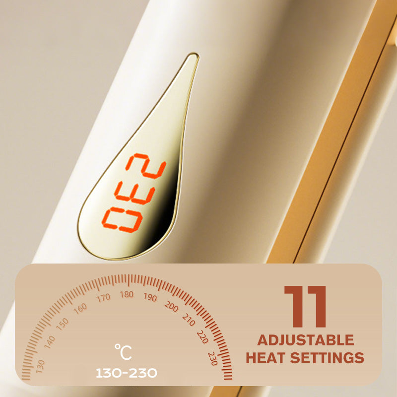 11 INSTELBARE WARMTESTANDEN MET LCD-TEMPERATUURWEERGAVE: Pas de warmte eenvoudig aan met behulp van het heldere LCD-scherm. Dit zorgt voor nauwkeurige controle, of je nu fijn, dik of pluizig haar hebt – voor gladde golven zonder haarbeschadiging.