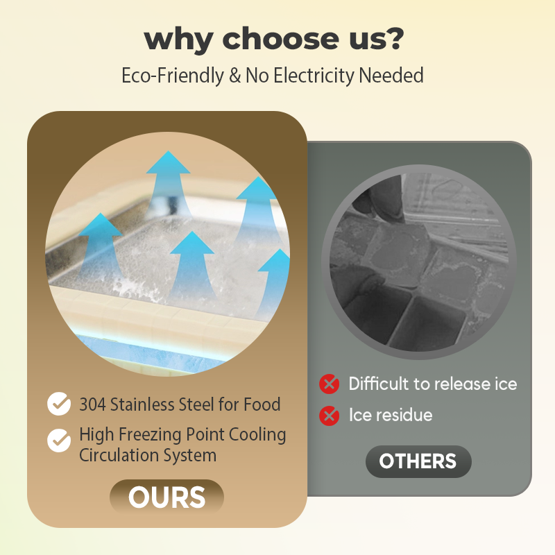 MILIEUVRIENDELIJKE VRIESVLOEISTOF, GEEN ELEKTRICITEIT NODIG: Gebruikt een milieuvriendelijke vriesvloeistof die geen elektriciteit nodig heeft. Eenvoudig invriezen, schenken en rollen – veilig, energiebesparend en perfect voor leuke zelfgemaakte traktaties op elk gewenst moment.