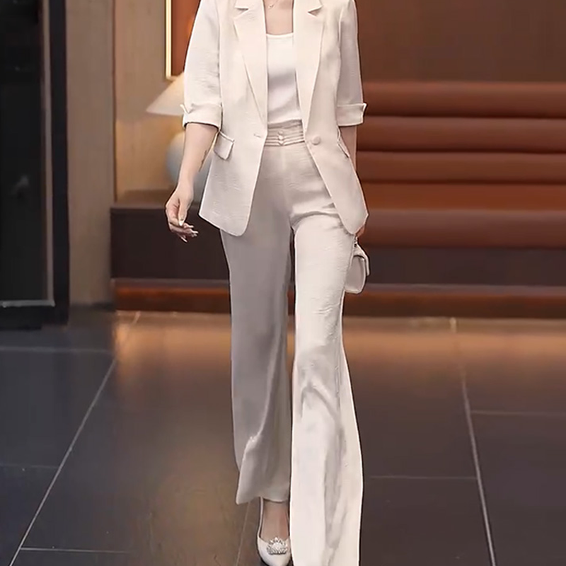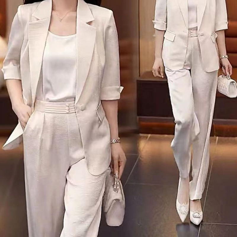 3-PIECE VERSATILITY – With a short-sleeve blazer, coordinating inner top, and high-waisted pants, this set adapts seamlessly to different environments. Wear the full ensemble for a polished presence, or mix and match the pieces for casual, business, or evening wear. Each combination provides effortless elegance without the stress of styling.