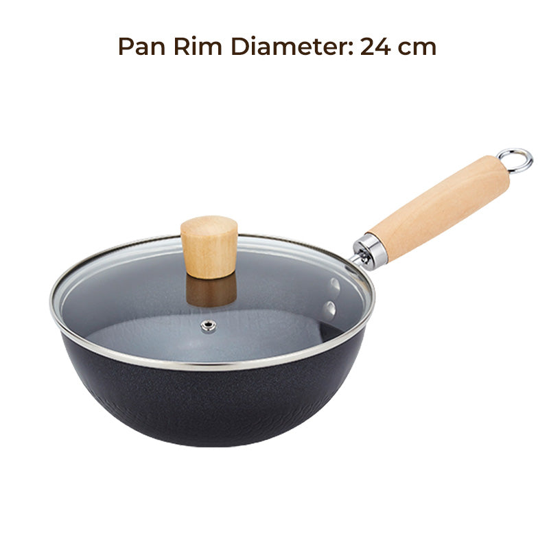 LICHTGEWICHT ERGONOMISCH HANDVAT – De pan is licht van gewicht en uitgerust met een ergonomisch houten handvat voor een comfortabele, veilige grip. Het doordachte ontwerp maakt het gemakkelijk om de pan te hanteren en te manoeuvreren, waardoor lange kooksessies moeiteloos en plezierig zijn.