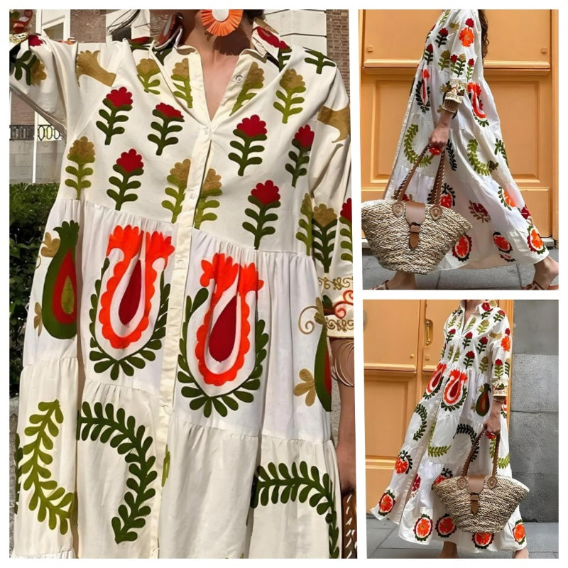 COMFORTABELE EN LOSSE PASVORM – De maxi-jurk met overlapkraag en knoopsluiting is ontworpen met een losse, casual fit die perfect is voor de hele dag. Het ontspannen silhouet biedt ultiem comfort zonder in te leveren op stijl.