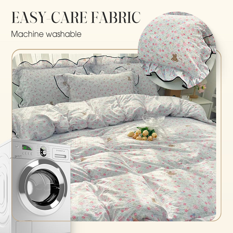 MOEITELOOS ONDERHOUD EN VERZORGING: Geniet van prachtig bedlinnen zonder hoge onderhoudskosten. Het kreukbestendige en machinewasbare materiaal maakt onderhoud opmerkelijk eenvoudig. Een snelle machinewas is alles wat het nodig heeft om te verjongen, en het droogt snel, zodat u niet hoeft te strijken of speciale schoonmaakrituelen hoeft te volgen. Breng minder tijd door met huishoudelijke taken en meer tijd met het genieten van uw frisse slaapkamer.