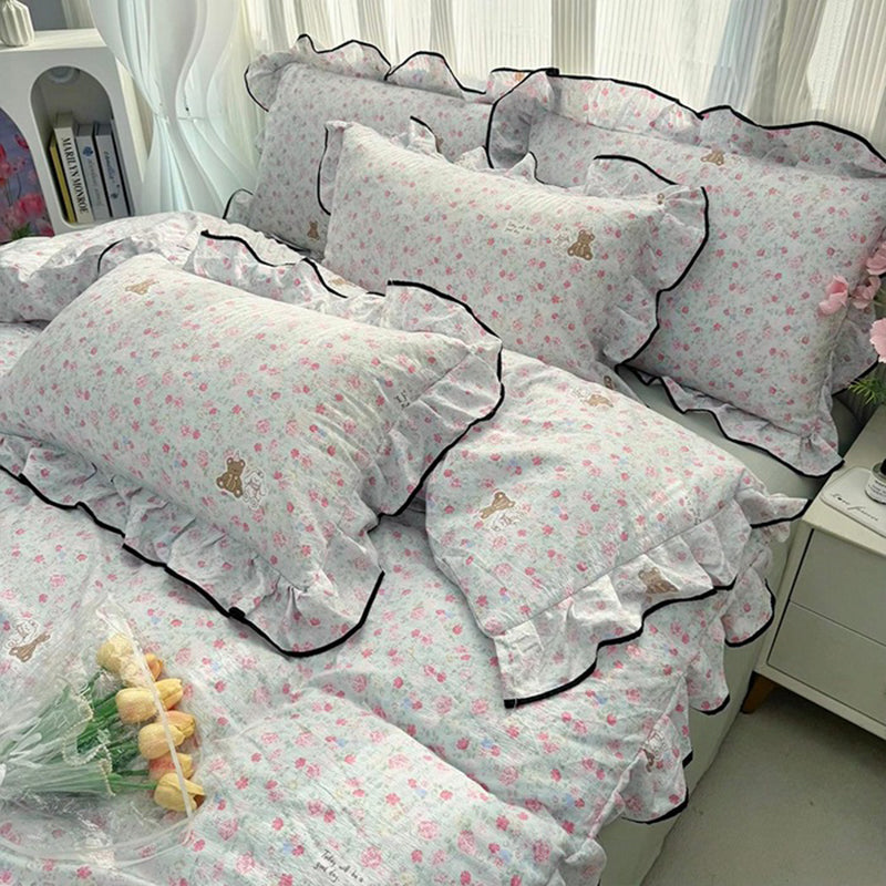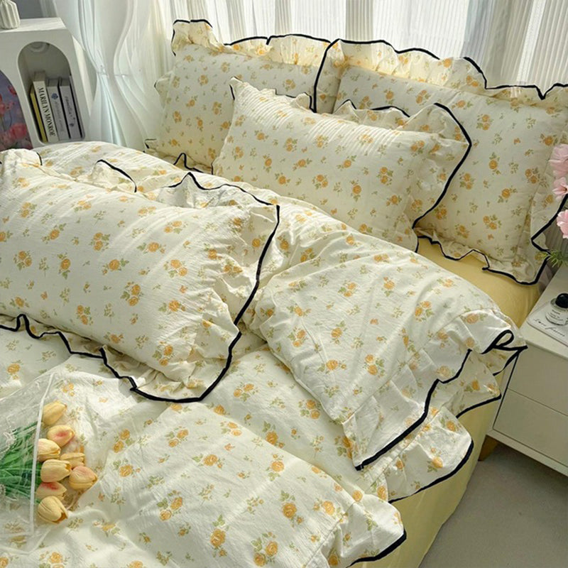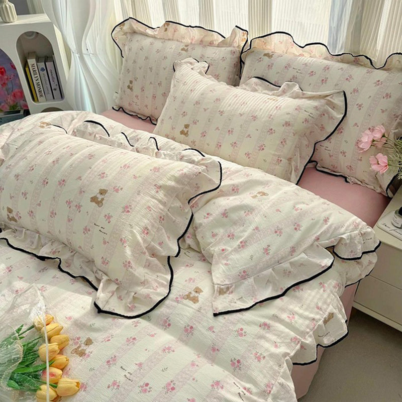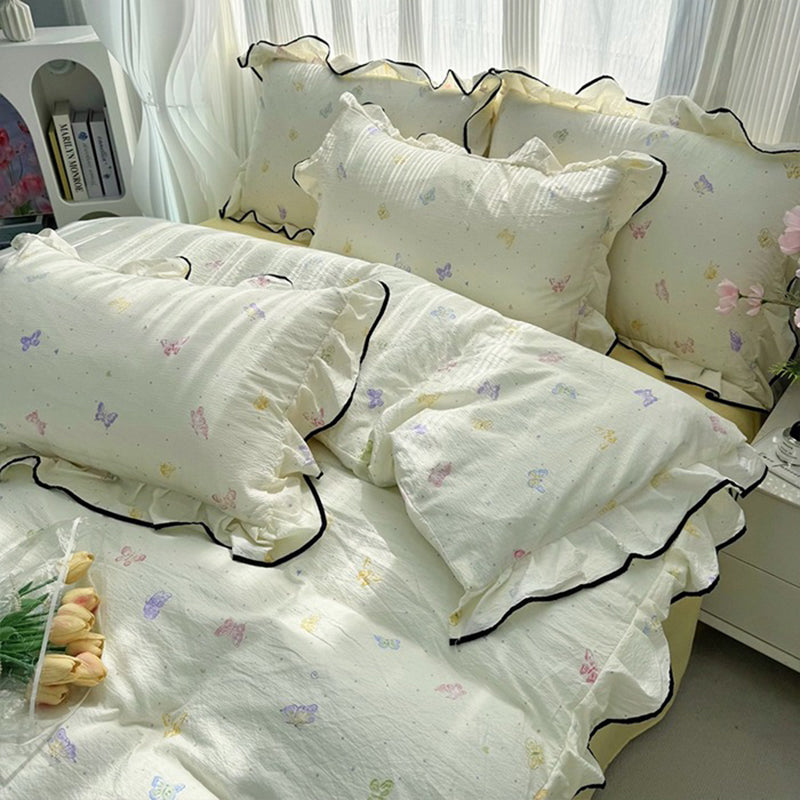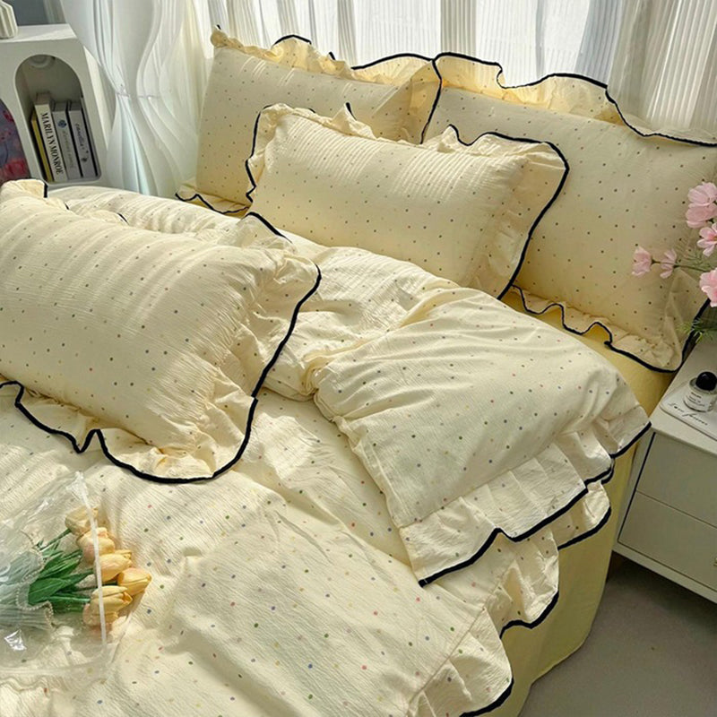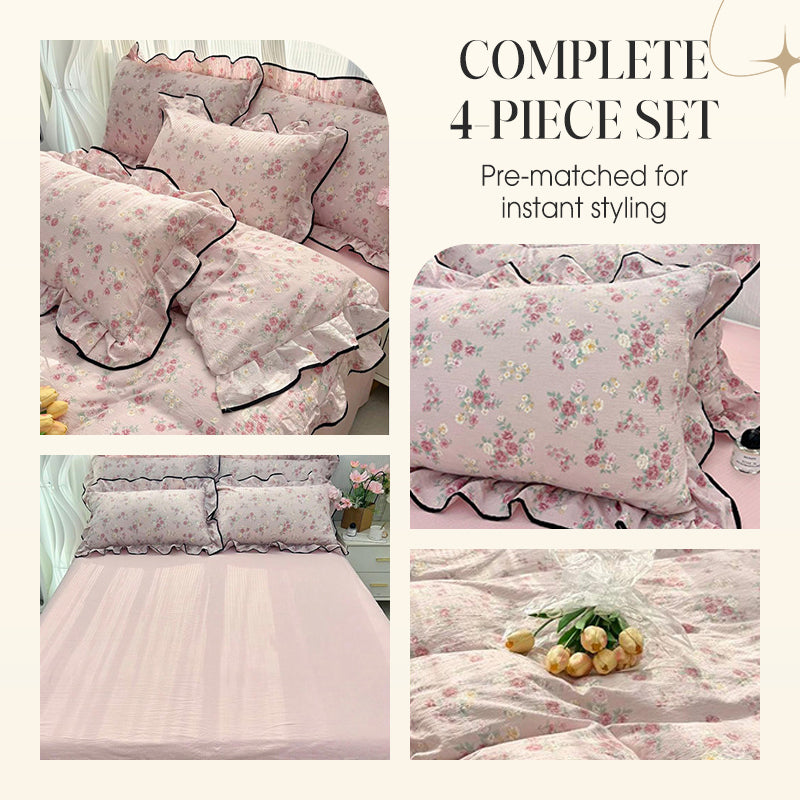 🛏️ Fris Bedlinnen Set met Gerimpelde Rand✨