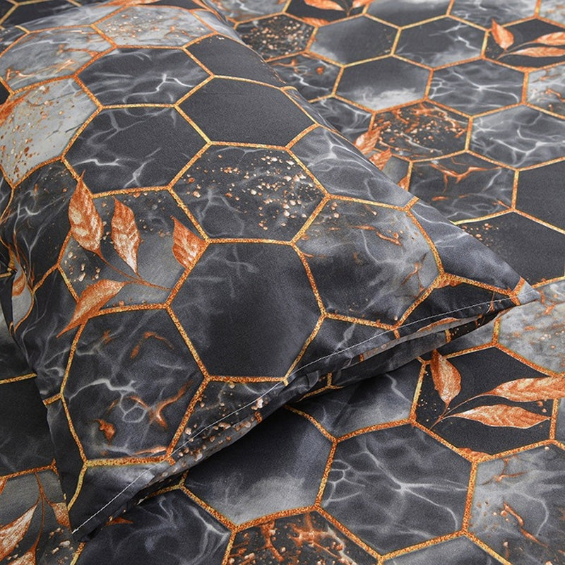 Dekbedovertrek en kussensloop met geometrische en bladgoud patronen