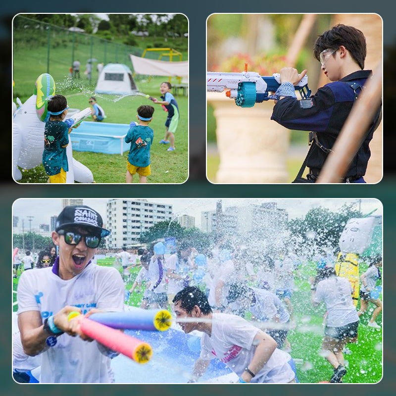 SCHIET TOT WEL 8 METER VERDER – Geniet van krachtige waterstralen met een bereik tot 8 meter, ideaal voor grote speelzones. De elektrische motor zorgt voor een continue, krachtige waterstroom, perfect voor buitenspellen of watergevechten.