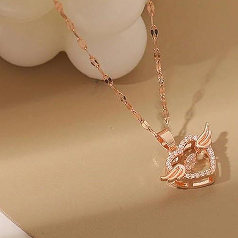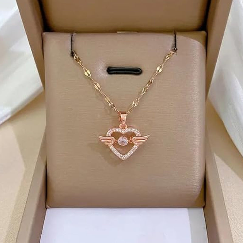 HART & VLEUGELS ONTWERP – Deze ketting combineert een klassiek hart met sierlijke engelenvleugels voor een zachte, elegante uitstraling. Het warme hart geeft een gevoel van troost, terwijl de vleugels lichtheid en hoop symboliseren.