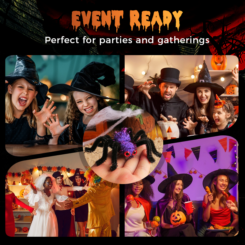 GRAPPIGE STIJL – Ontworpen met een pluizige bol en buigzame draadpoten, voegt deze Halloween spin haarclip meteen een grappige en stijlvolle touch toe aan je feestelijke look. Geschikt voor feestjes, trick-or-treat of thema-evenementen. Het leuke ontwerp spreekt zowel kinderen als volwassenen aan en zorgt voor een levendige Halloween-sfeer, waar je ook gaat.