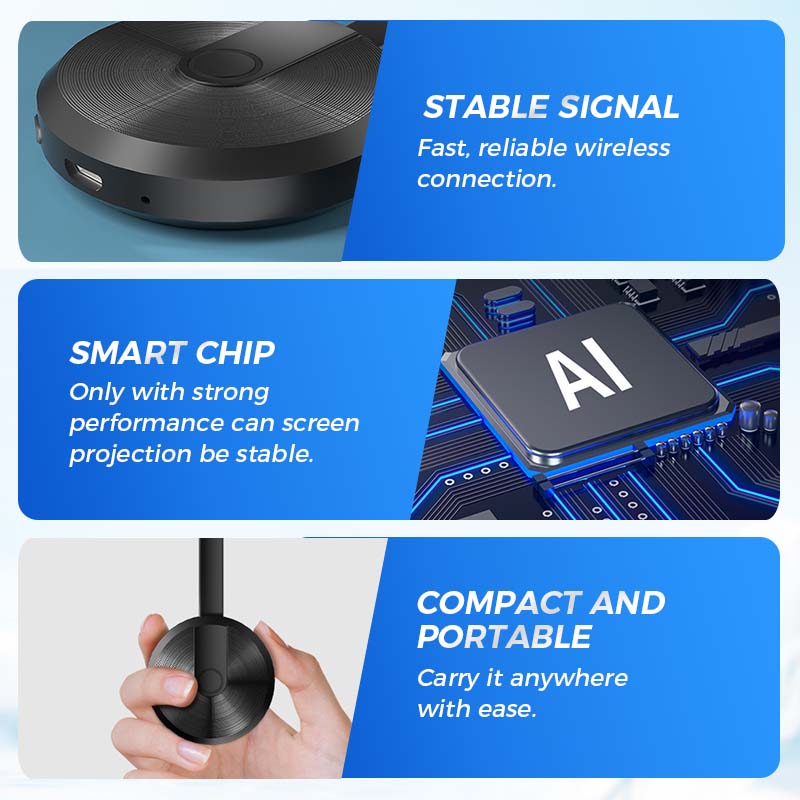 GEEN VERTRAGING, GEEN BUFFERING – Geniet van naadloze schermdeling zonder haperingen. Of het nu gaat om videogesprekken, presentaties of streaming, de HD-adapter zorgt voor een vloeiende, vertragingvrije weergave in 1080P of 4K, zodat elk detail haarscherp zichtbaar is.