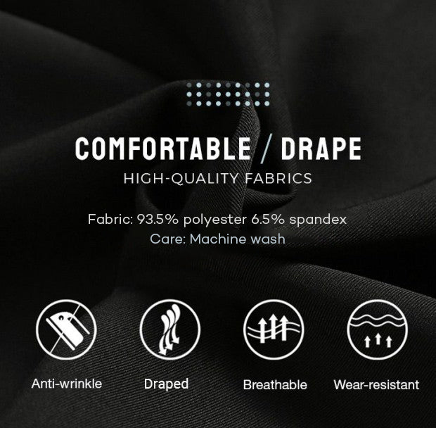 Gemaakt van elastische stof, zijn de klassieke broeken ontworpen om ademend, kreukbestendig te zijn en hebben ze een 4-weg stretch die je de hele dag comfortabel houdt.
