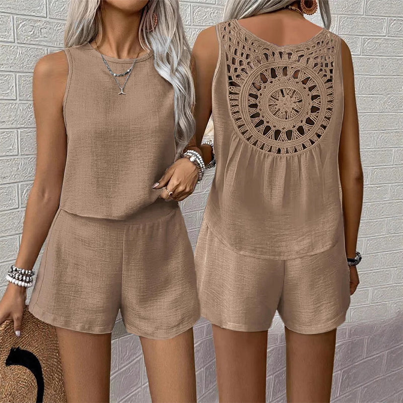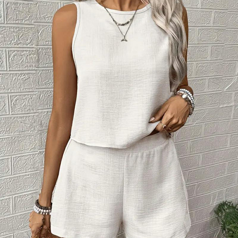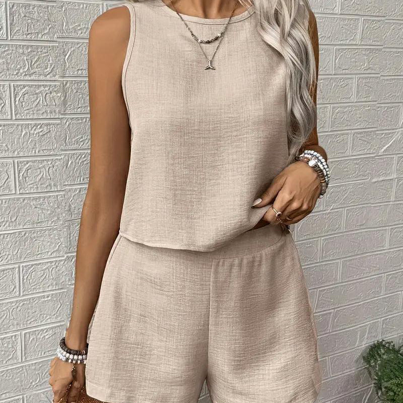 VERSATILE 2-PIECE MATCHING SET - De set bestaat uit een mouwloze top en bijpassende shorts, ontworpen voor moeiteloze coördinatie. Draag ze samen voor een gepolijst ensemble of stijl ze apart voor meerdere outfitopties. De relaxte pasvorm zorgt voor comfort en flatteert elk lichaamstype.