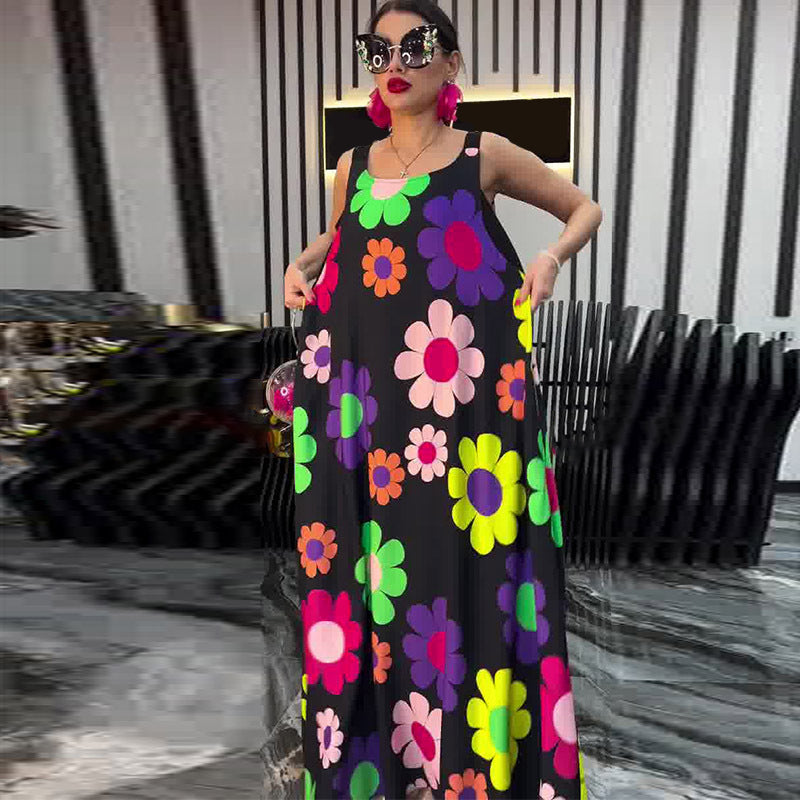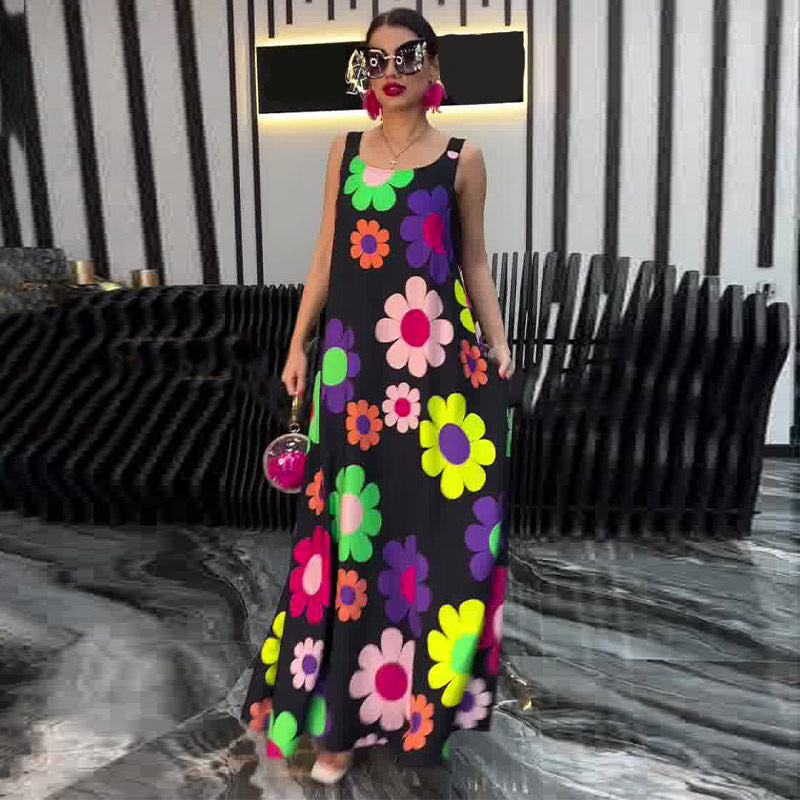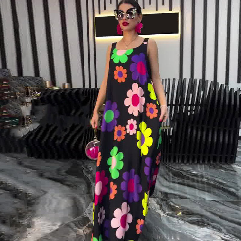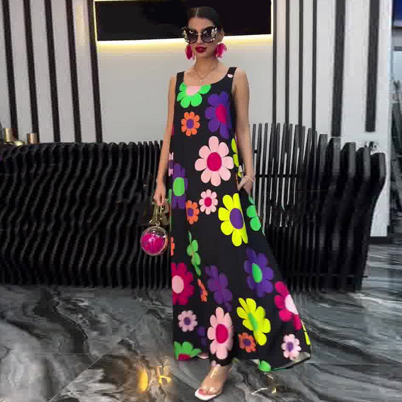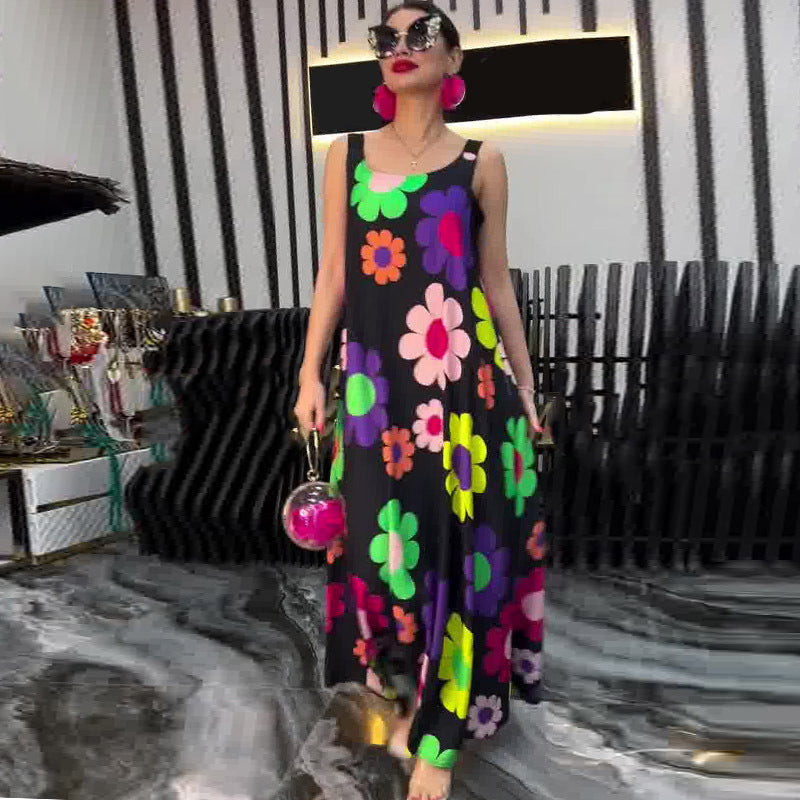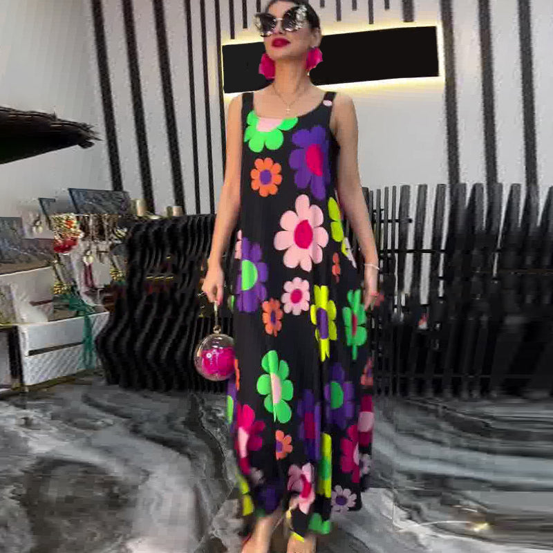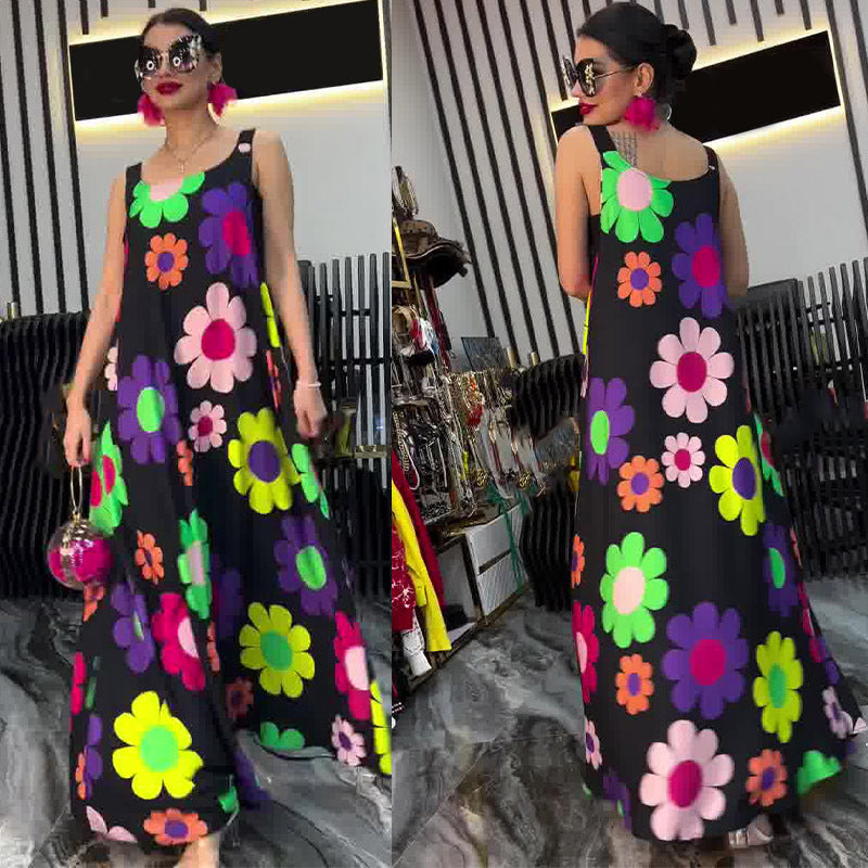Verpakking bevat: 1 x Gebloemde Mouwloze Losse Jurk tot de Enkel