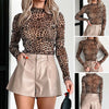 Luipaard Mesh Top met Lange Mouwen