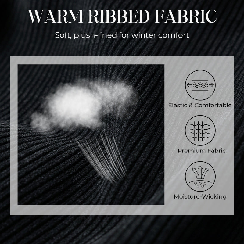 PLUCHGEVOERDE GERIBBELDE STOF - Ervaar uitzonderlijke warmte en zachtheid met de pluche gevoerde binnenkant en klassieke geribbelde buitenkant. Dit ontwerp biedt uitstekende isolatie tegen de kou en blijft tegelijkertijd lichtgewicht en comfortabel om de hele dag te dragen tijdens koudere seizoenen.