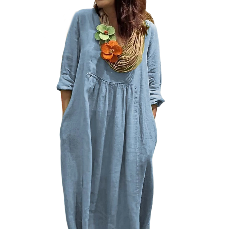Pakket bevat: 1 × Losse effen maxi-jurk met V-hals