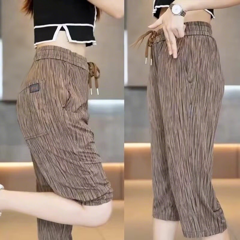 TRENDY 3/4-LENGTE – De broek is perfect gesneden tot halverwege de kuit en creëert zo een moderne look die zowel luchtig als bedekkend is. Het subtiele patroon geeft visuele diepgang zonder de minimalistische stijl te overheersen.