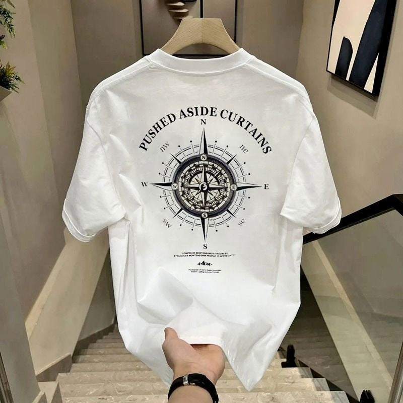 DUBBELZIJDIG PRINTONTWERP: Ontdek een unieke stijl met kompasprints aan de voor- en achterkant in contrasterende maten. Het minimalistische borstlogo biedt subtiele charme, terwijl de opvallende afbeelding op de achterkant een opvallende streetwear-statement maakt.