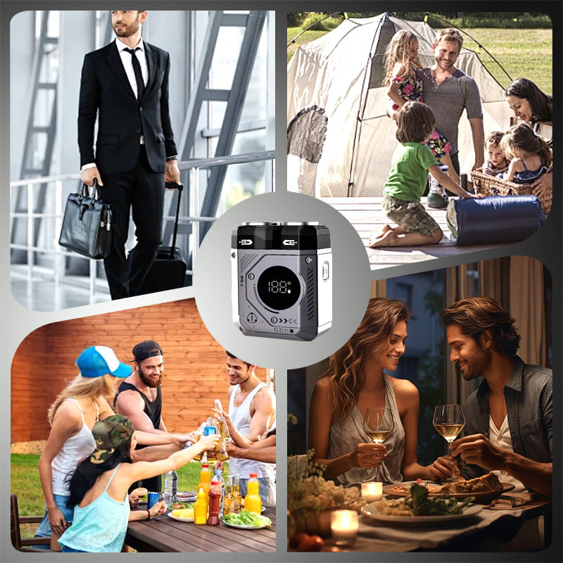 SMART TRAVEL LOCK: Voorkomt onbedoelde activering met een automatisch vergrendelingsmechanisme van 3 seconden na uitschakeling. De intuïtieve interface bevat een LED-batterijweergave en bediening met één knop (ingedrukt houden om in te schakelen).