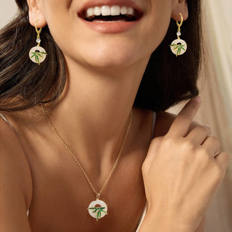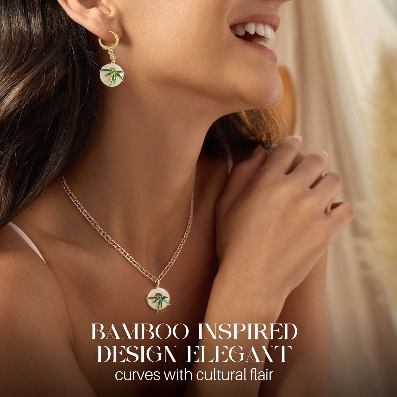 Moderne Oosterse Stijl Bamboe Oorbellen en Ketting
