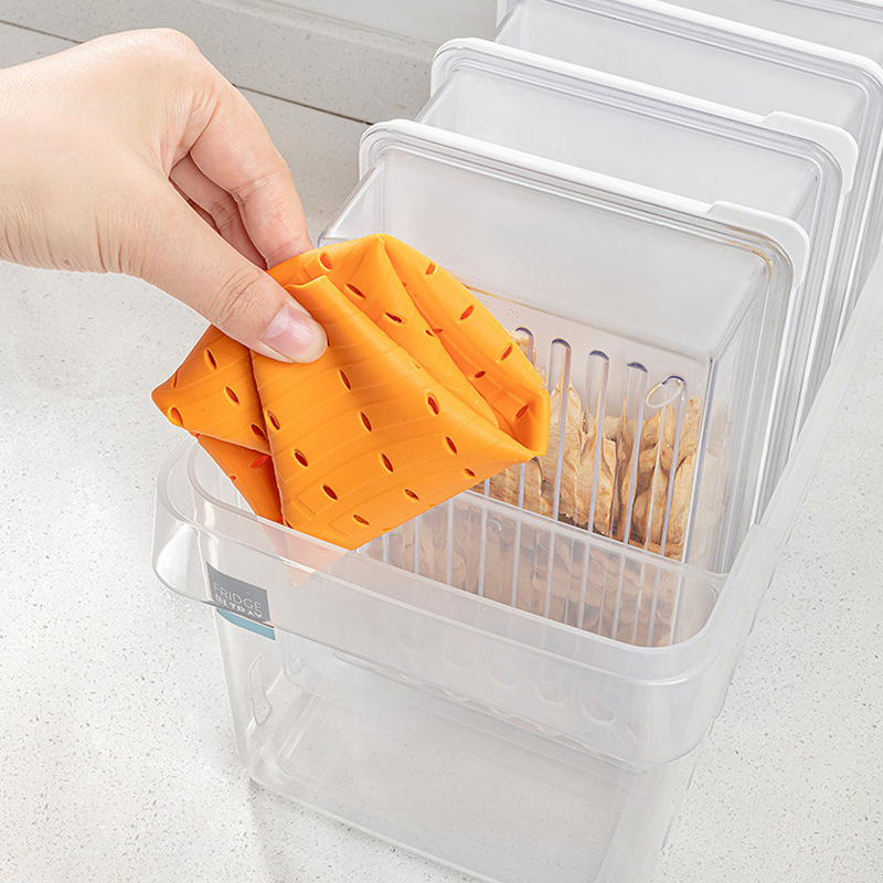 DRAINAGEONTWERP MET MEERDERE GATEN – Voorzien van rondom geplaatste afvoergaten voor een gelijkmatige waterverdeling. Dit ontwerp filtert effectief kleine voedseldeeltjes en zorgt voor een snelle afvoer. Het handvat aan de rand maakt het dragen en optillen eenvoudig.