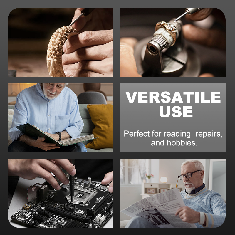 DUURZAAM EN VEELZIJDIG – Gemaakt met een stevig ABS-frame, acryl optische lenzen en duurzame LED-verlichting. Of je nu kleine letters leest of delicate elektronica repareert, deze vergrootbril zorgt voor precisie.