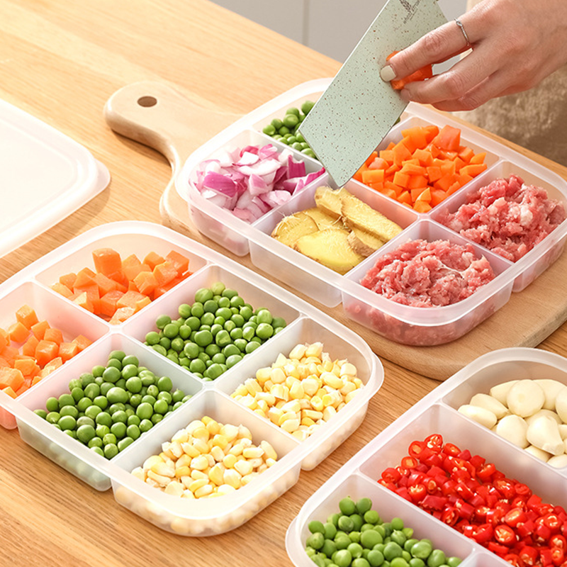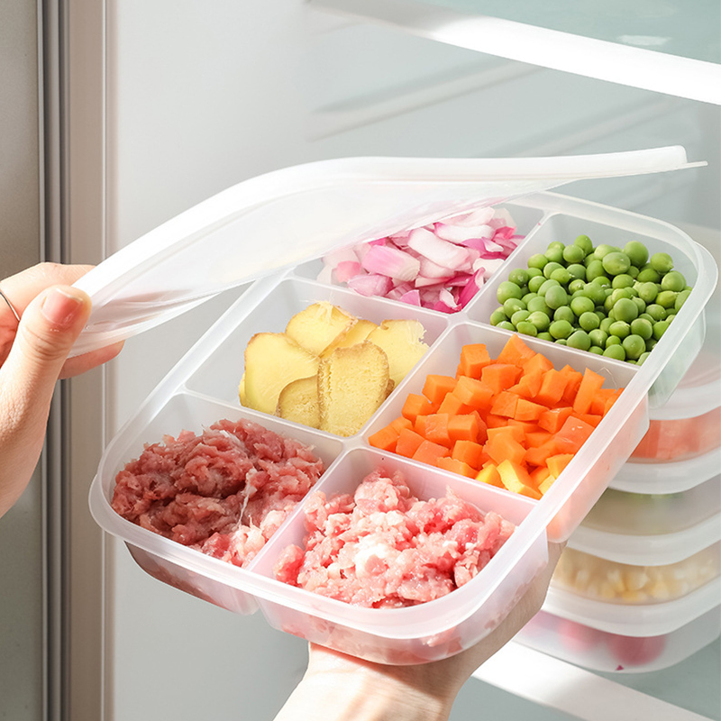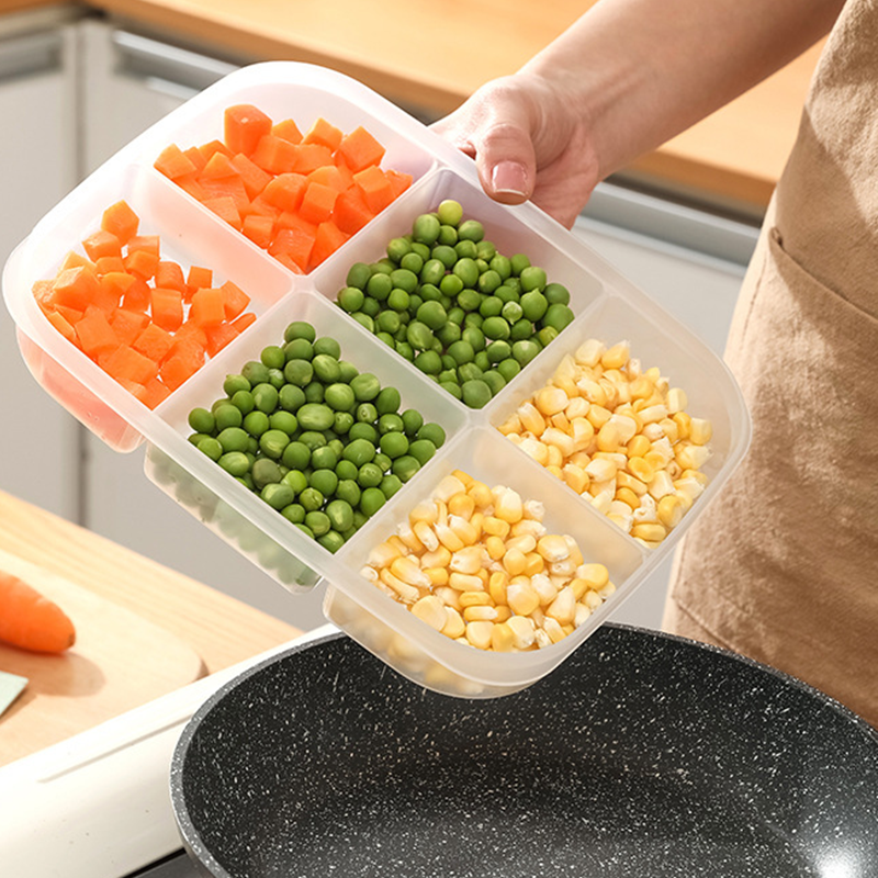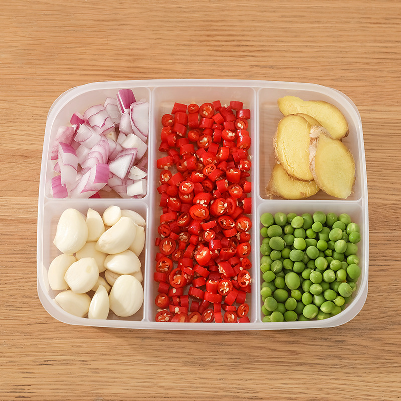 MULTI-SECTIE LAY-OUT – Deze container heeft meerdere compartimenten die het mogelijk maken om voedsel gescheiden te houden voor een gemakkelijke organisatie. Het is ideaal voor het voorbereiden van ingrediënten per recept—waarbij elk onderdeel klaar wordt gehouden—en voor het apart bewaren van verschillende voedingsmiddelen om te voorkomen dat smaken zich mengen. Of je nu maaltijden van tevoren bereidt of gewoon voedsel organiseert, dit ontwerp houdt je keuken netjes en maakt voedselbeheer eenvoudiger.