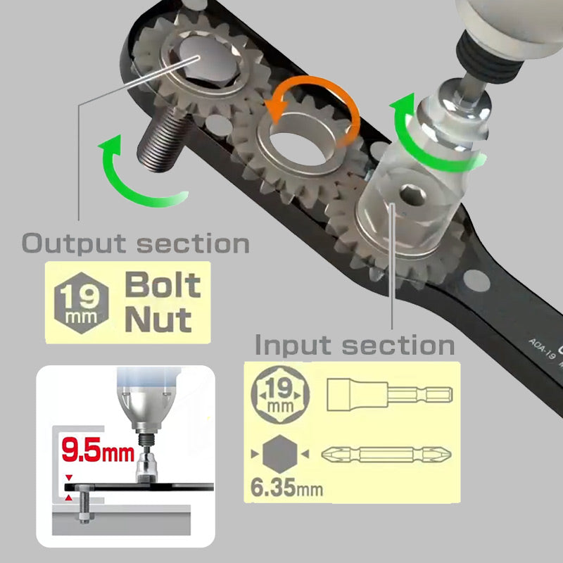COMPACT ONTWERP: De 19mm offsetadapter maakt het gemakkelijk om op moeilijk bereikbare plaatsen te werken, wat hem ideaal maakt voor auto- en mechanische werkzaamheden.