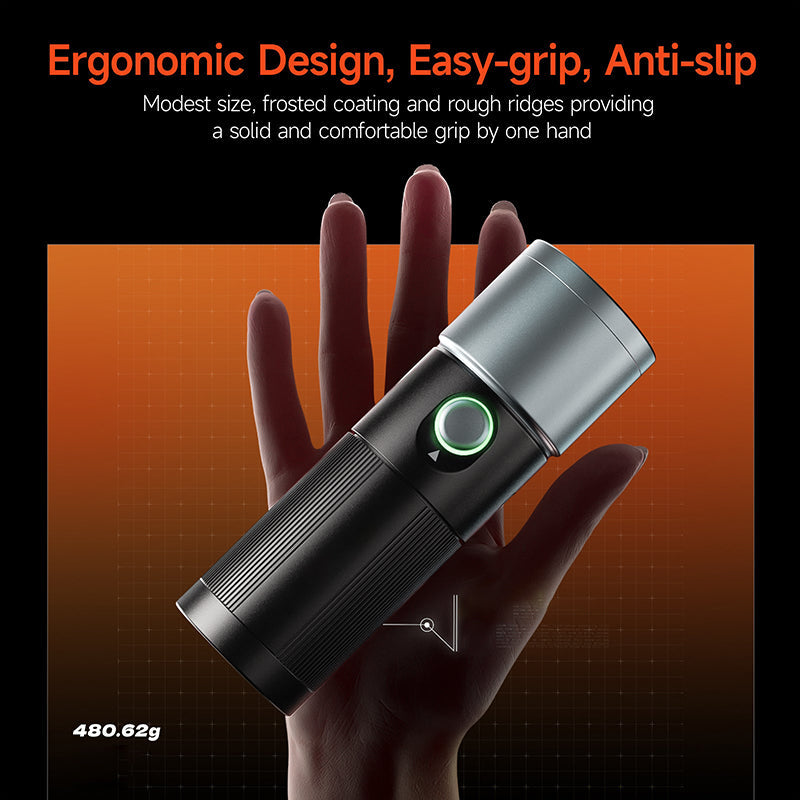 COMPACT EN DRAAGBAAR ONTWERP: Met afmetingen van 15,6 x 4,8 x 5,2 cm en een gewicht van 495 g ± 10 g is deze zaklamp gemakkelijk mee te nemen en op te bergen. Het lichte ontwerp maakt het een handig hulpmiddel voor fotografen onderweg.