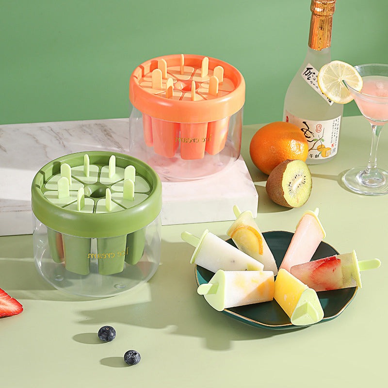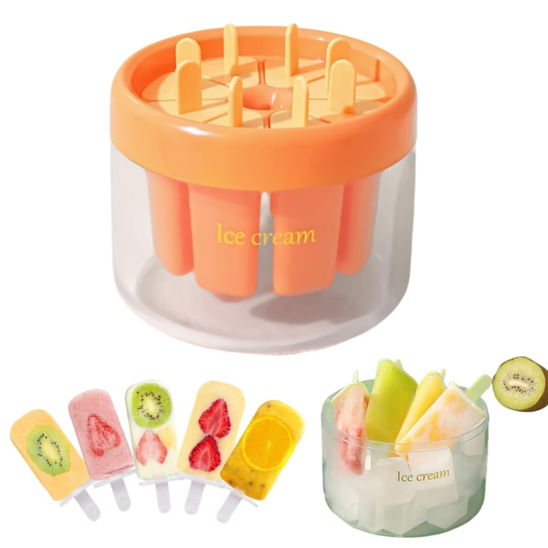 Nieuw ontwerp ijslollyvorm: de upgrade ijslollyvormen zijn ontworpen met 8 gaten en 8 herbruikbare stokjes en worden geleverd met een ronde ijskast om uw ijslolly's koud te houden. De vormgrootte is perfect geschikt voor kinderen, waardoor materiaal wordt bespaard, gemakkelijk schoon te maken, veilig in gebruik en lange tijd kan worden hergebruikt.