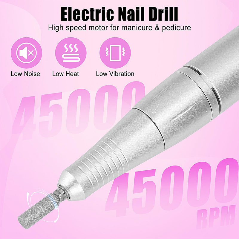 KRACHTIGE HIGH-FREQUENCY MOTOR MET AANPASBARE SNELHEID -Uitgerust met een motor die tot 45.000 RPM draait, krijgen gebruikers een sterke en consistente kracht voor het efficiënt vormgeven en polijsten van de nagels. De motor werkt stil en zonder overmatige warmte, waardoor de gebruikerservaring wordt verbeterd terwijl de optimale prestaties voor verschillende nagelverzorgingstaken behouden blijven.