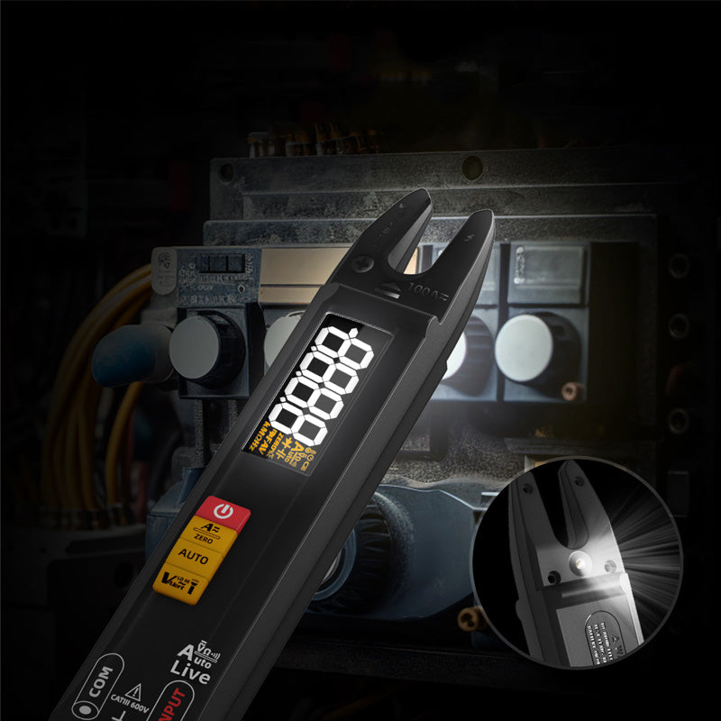 DUBBELE MODUS METING: Professionele slimme stroomtang en multimeter in één apparaat. Meet nauwkeurig zowel wissel- als gelijkstroom (1-100A) en spanning (0,001-610V) met een resolutie van 6000 tellingen en ±0,8% DC nauwkeurigheid. Geïntegreerde meetkabels zorgen voor uitgebreide circuitanalyse.