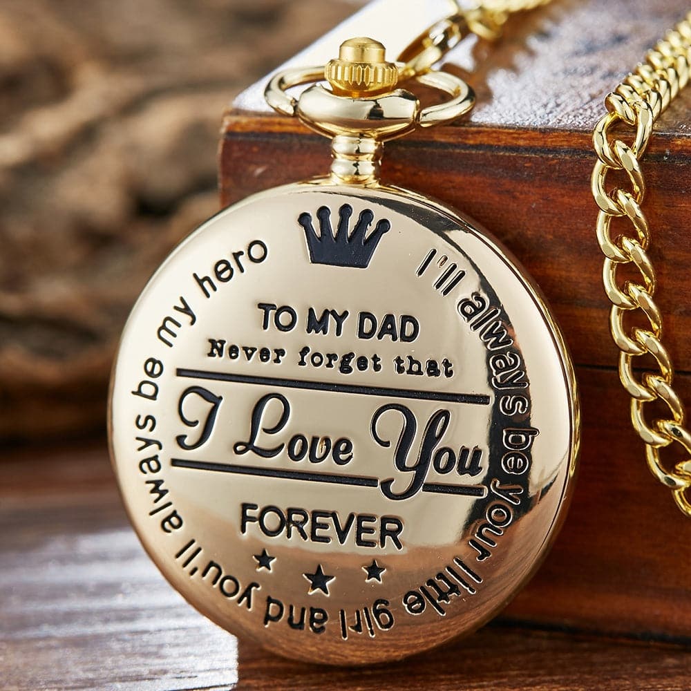 Retro, eenvoudig en gedenkwaardig zakhorloge gegraveerd met een speciale betekenisvolle boodschap.
