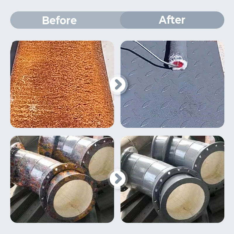 STERKE HECHTING EN DUURZAAMHEID: Biedt uitstekende hechting aan metalen oppervlakken en vormt een harde, duurzame en slijtvaste coating. Voorkomt verdere roestvorming en corrosie, waardoor de levensduur van uw metalen constructies aanzienlijk wordt verlengd.
