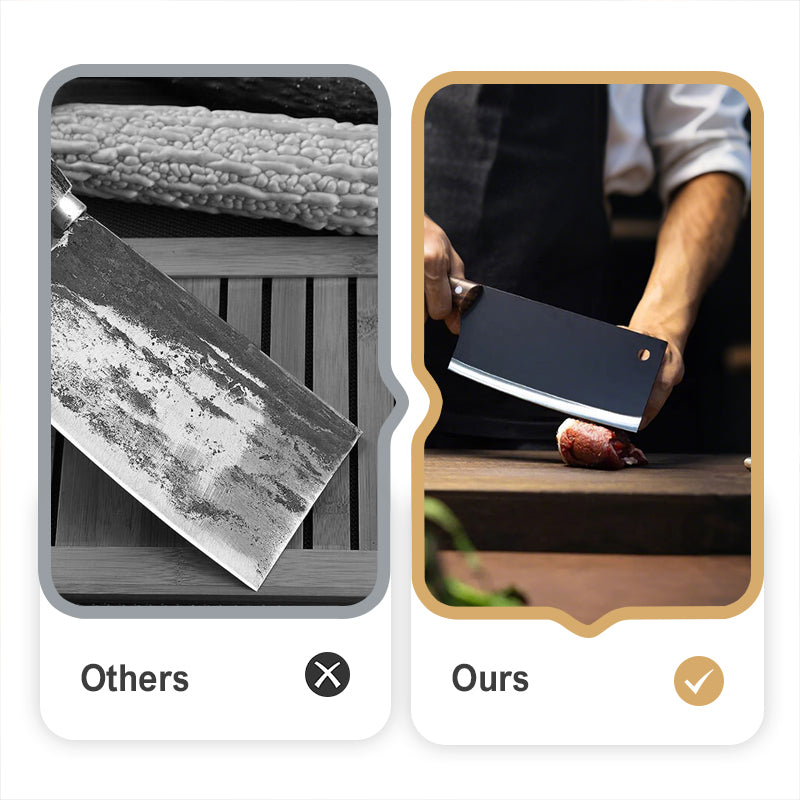 PRECIEZE 15° V-GESLEPEN SNEDE: Met de hand vervaardigd met een dubbel geslepen 15° hoek voor vlijmscherpe precisie. Deze ultradunne snede zorgt voor moeiteloos snijden, hakken en versnipperen, waardoor de bereidingstijd wordt verkort en professionele resultaten worden geleverd. Of je nu vlees, groenten of kruiden snijdt, dit mes behoudt zijn scherpte langer dan standaardmessen.