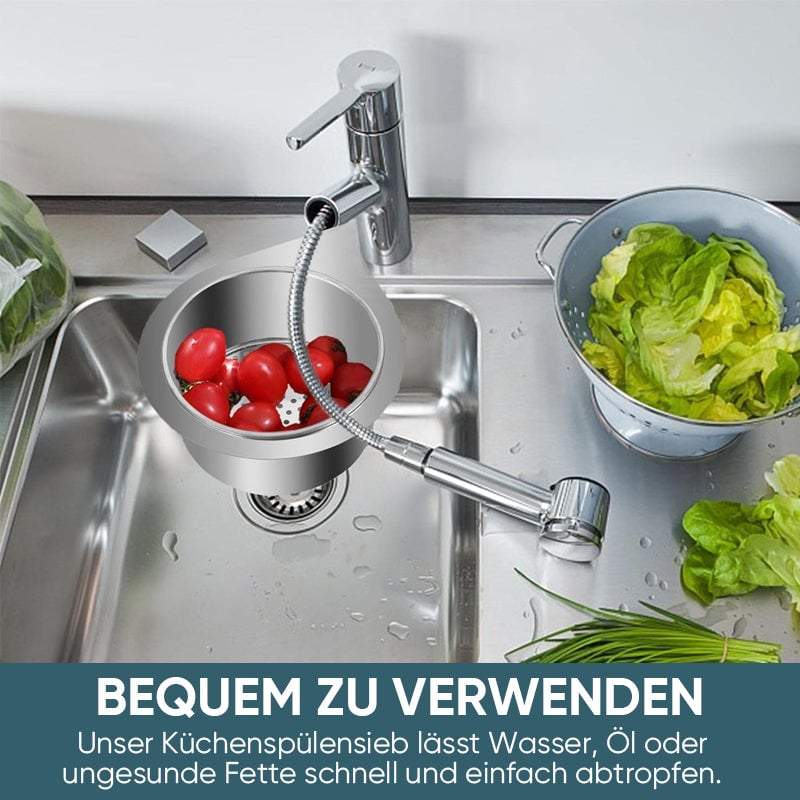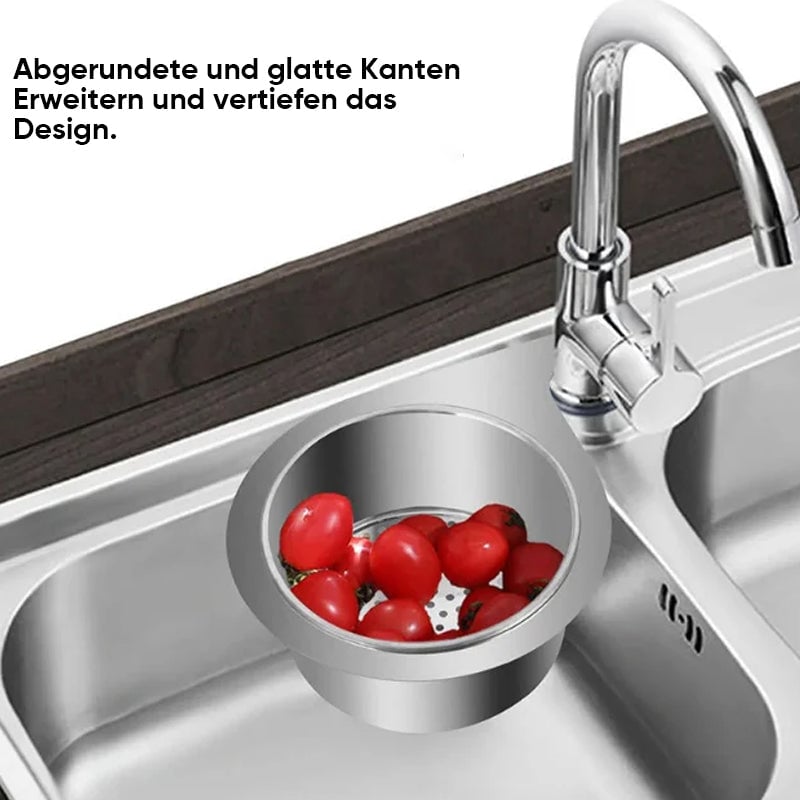 - De verbeterde filterzeef voor de gootsteen heeft een vergrote opening om op te hangen. Het ingenieuze ontwerp van de afvoerkorf voor de zwanenaanrecht bespaart ruimte en de hoogwaardige materialen zorgen voor een gezond en veilig gebruik. Een voedselzeef voor de gootsteen kan in de hoek van de gootsteen worden geplaatst om etensresten uit te filteren.