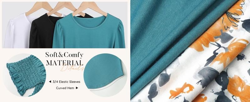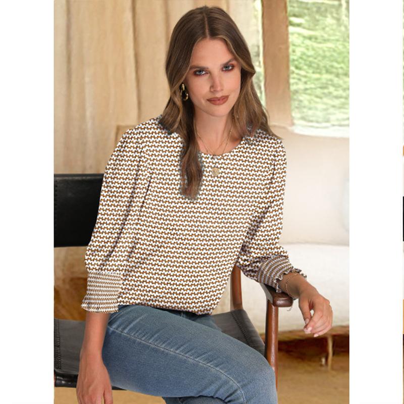 Onze Dames Casual Blouses met 3/4 Mouwen en Gesmokte Manchetten zijn gemaakt van huidvriendelijke en comfortabele materialen, simpel en chic, waardoor je een verscheidenheid aan looks kunt creëren, van comfortabel tot chique en modieus.