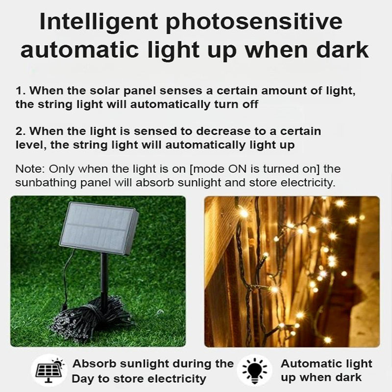 8 VERLICHTINGSMODI - Solar verlichte snoeren bieden 8 verlichtingmodi om aan je wensen te voldoen! Prachtige verlichtingmodi, waaronder combinatie, vuurvliegjes knipperen, golven, vervagen, achtervolgen/knipperen, langzaam vervagen, twinkelen/knipperen en constant aan.