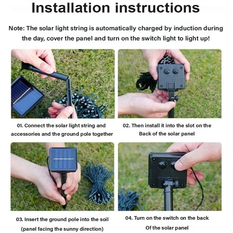 Solar lichtsnoeren beïnvloeden het gebruik niet op regenachtige dagen of in vochtige omgevingen, geschikt voor zowel buiten- als binnenshuis. Je kunt de romantische gloed zien, die een warme en zachte sfeer in je leven creëert. Veilig om aan te raken, gemakkelijk op te bergen en klaar voor het volgende gebruik. Geen zorgen over het gebruik in de regen.