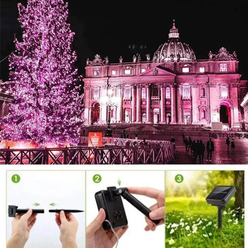 ZONNE-ENERGIE & UITSTEKENDE PRESTATIES - Het 100 LED solar snoerlicht (laag voltage, zonder transformator) heeft geen batterijvervanging nodig en laadt zelfs bij bewolking dagen op en gaat automatisch aan bij schemering met heldere lichtkleur. Zonne-energie verlichting zal de beste prestaties leveren.