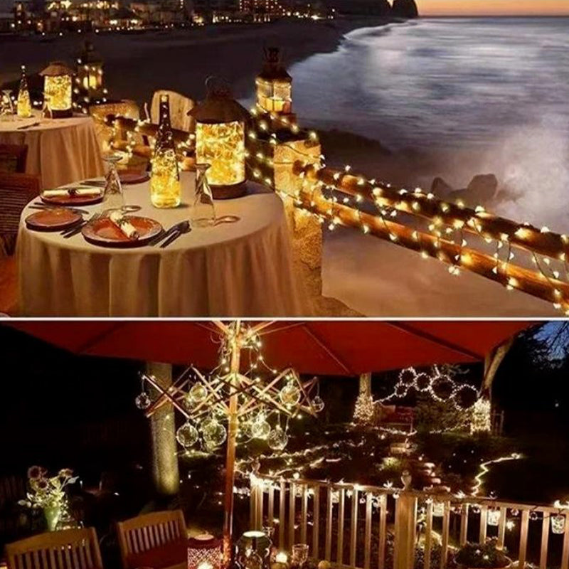 IDEALE VERLICHTING - 100 superheldere LED-lampjes op 10 meter hoogwaardig koperdraad, met een constante 360-graden kijkhoek verlichten ze in alle richtingen. Ideaal voor het decoreren van je tuin, terras, poort, tuin, bruiloften, feesten, enz.